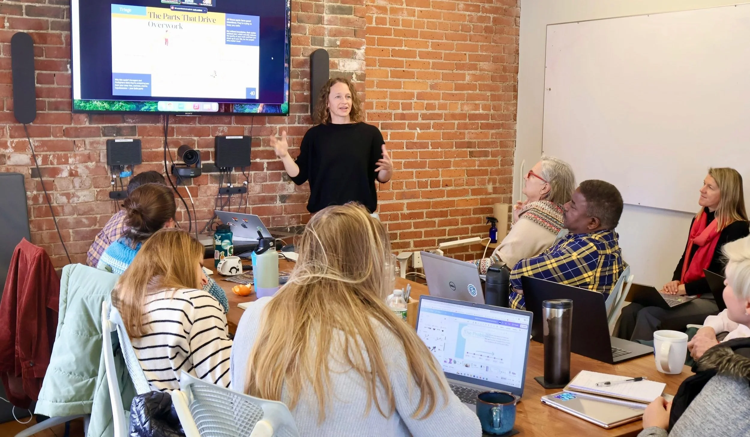 If applicable, I also design for neurodivergent learners and people who are already exhausted. That means chunked information, highly visual content, story-driven learning, movement breaks, and explicit permission to participate in whatever way works best. Sit in the back. Skip the group activity. Take a walk. No one's getting called on.