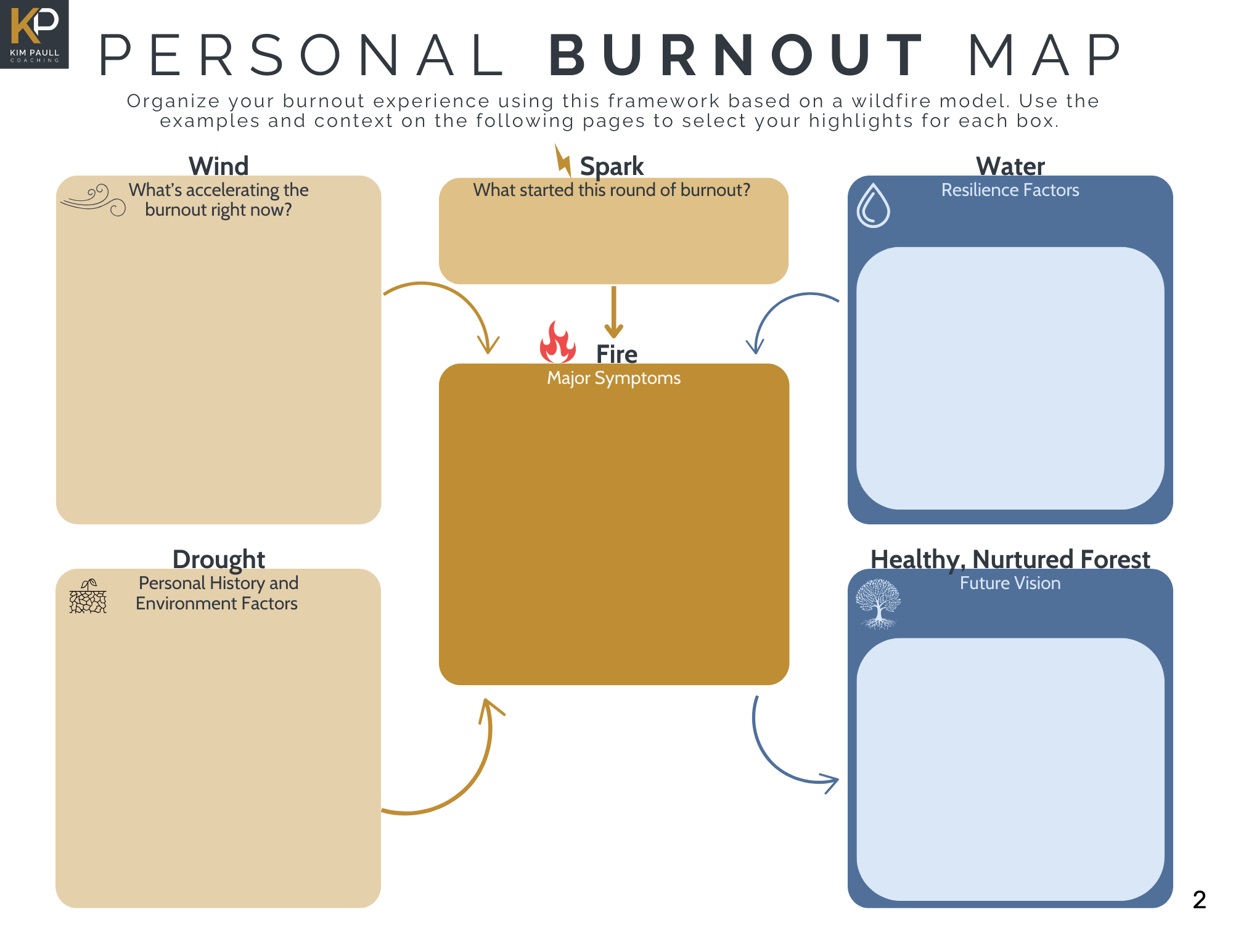 The Forest Fire Model organizes these conditions into what's sparking the burnout, what's accelerating it (the wind), and what deeper conditions made you more vulnerable (the drought). Identifying your wind factors — the ones you actually have some control over — is where the most useful coaching work tends to happen.
