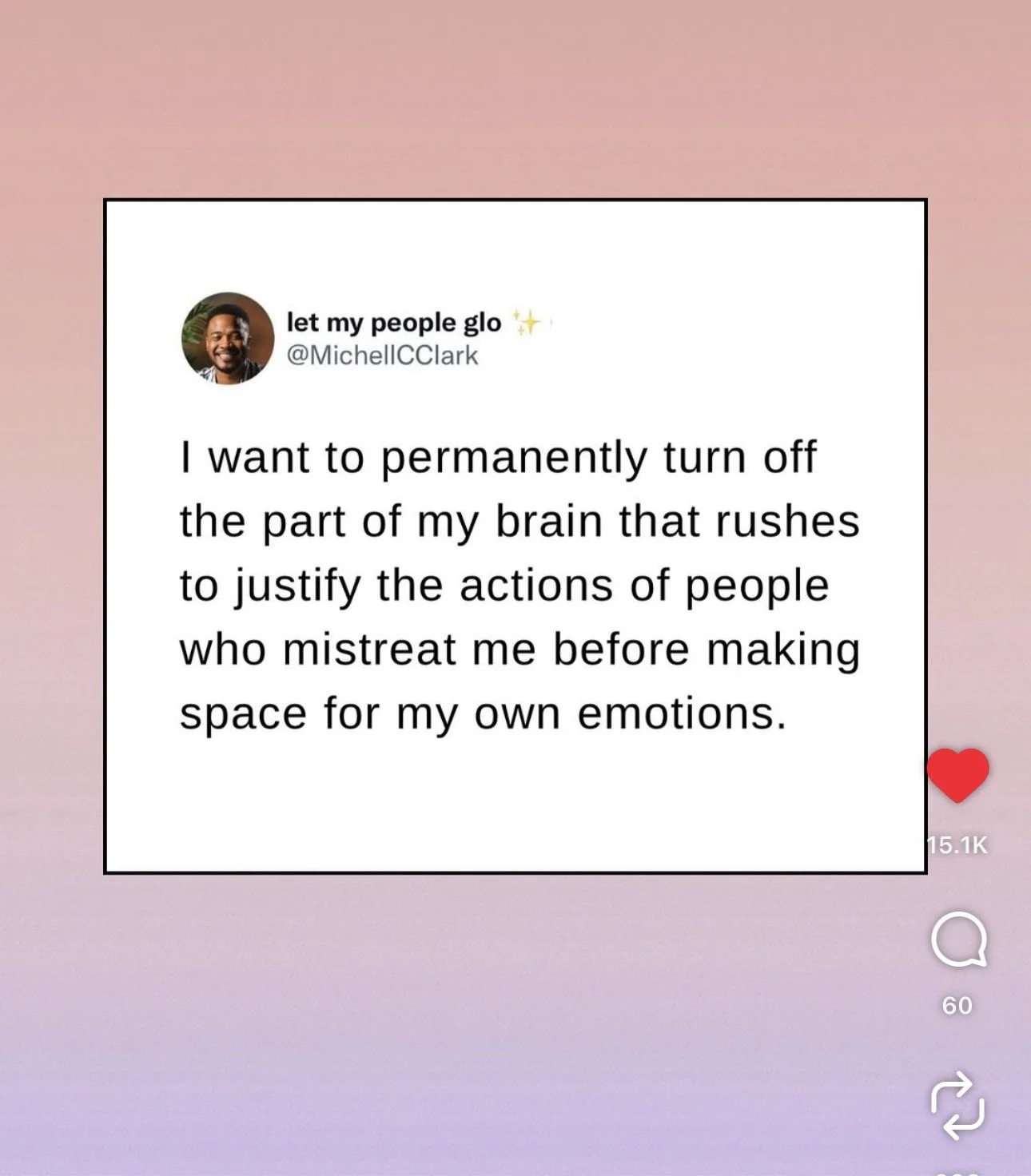 But it's actually a specific bargain: "If I make myself small enough, if I ask for small enough things, if I manage enough, then maybe they'll love me, and also maybe I'll finally feel like I deserve to exist."
